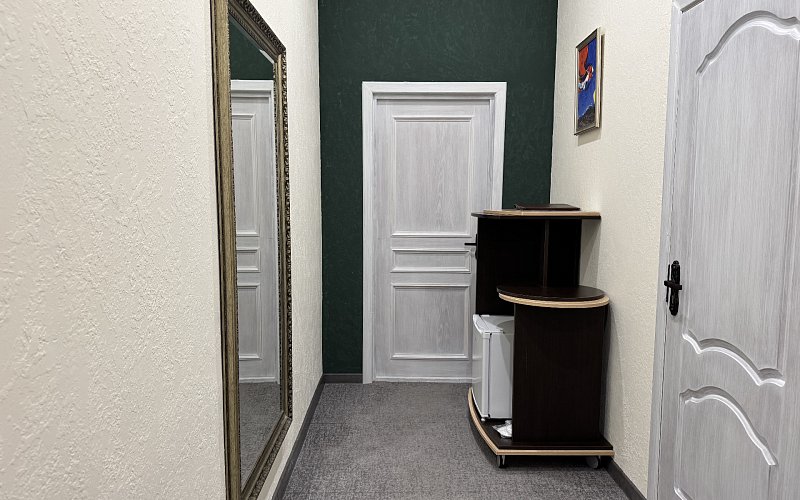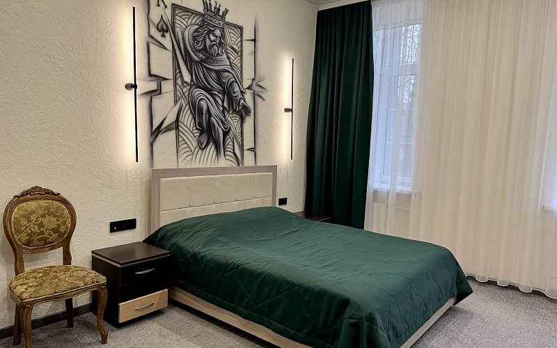 Наш двухместный номер «Бизнес-класс» с дополнительным спальным местом, площадью 47 кв.м., находится на втором этаже гостиницы. Состоит из небольшого холла, спальни и просторной ванной комнаты с отдельно стоящей ванной и душевой кабиной. В номере находится телевизор, письменный стол и два больших окна, которые выходят на наш внутренний дворик, благодаря чему там всегда светло и уютно.